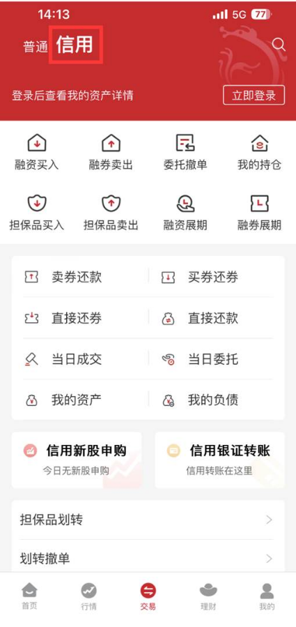 四、 融资融券菜单界面