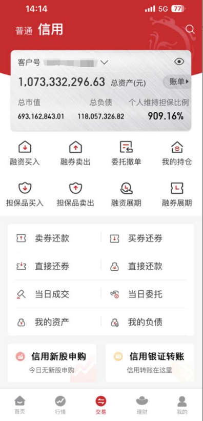 3、系统自动按投资者融资额度90%、融券额度10%比例进行分配,融资授信额度和融券授信额度可以混用。