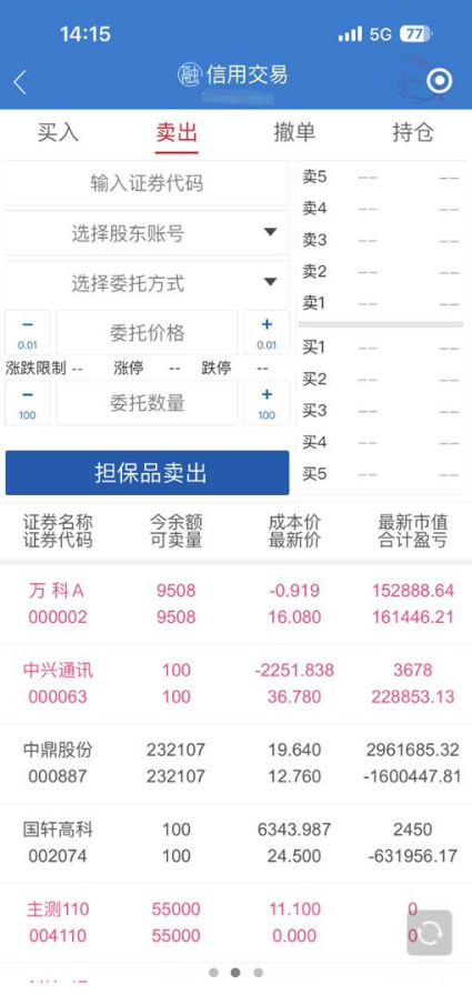 2、担保品卖出(担保证券卖出)
