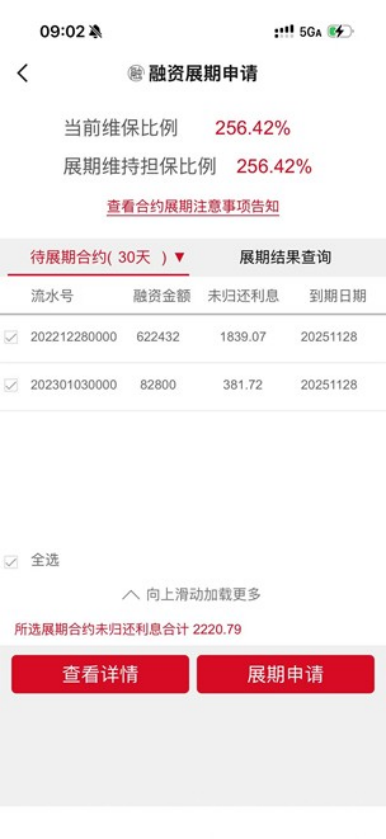 (2)提交申请时投资者账户“展期维持担保比例”要求: