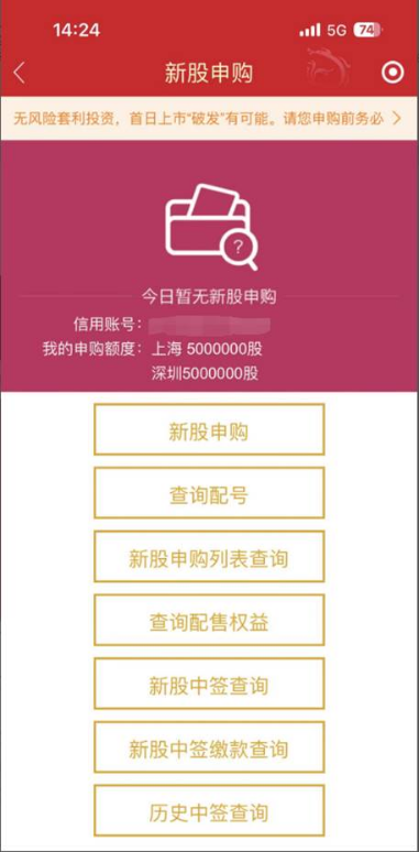 投资者只能在普通账户或信用账户中选择一个账户中进行同一只新股的申购。