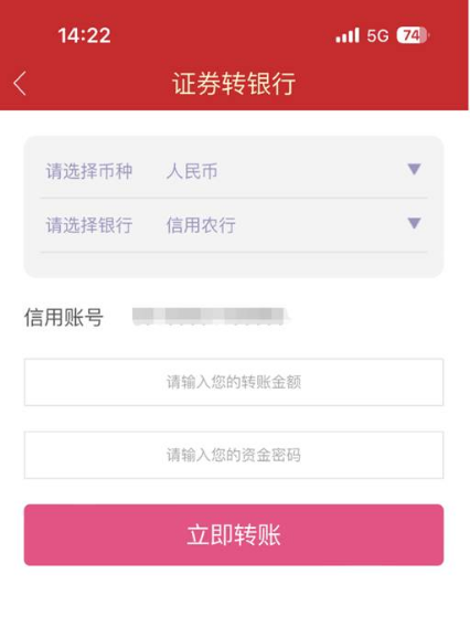 资金划转:通过 “资金转入”和“资金转出”完成。