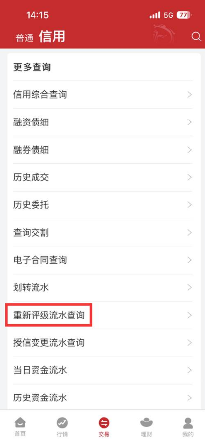 投资者通过“融资融券—重新评级/重新评级流水查询”菜单可已进行下图中的操作:
