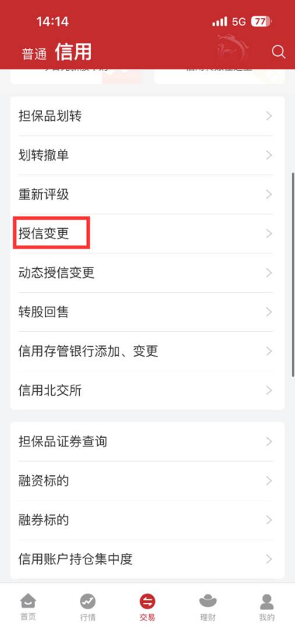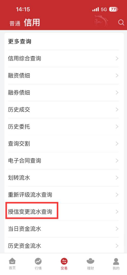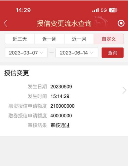 投资者通过“融资融券—动态授信变更/授信变更流水查询”菜单进行下图中的操作: