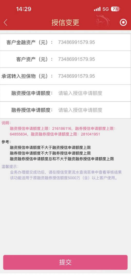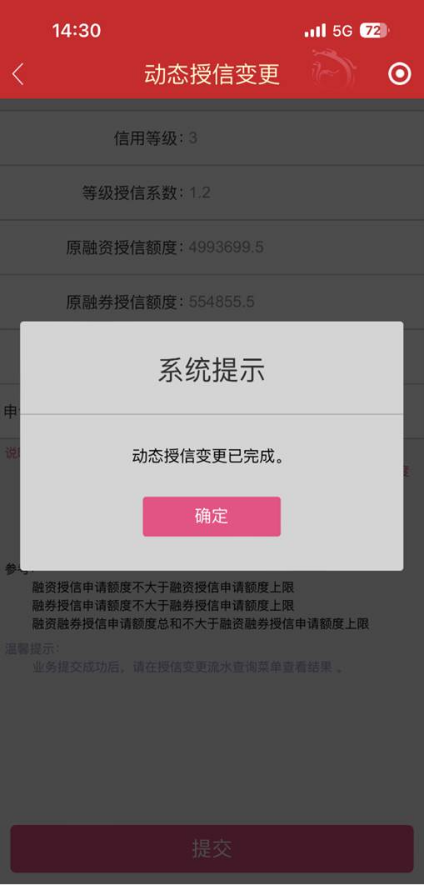 4、投资者存在待审核的 “授信变更”申请时不可重复申请。