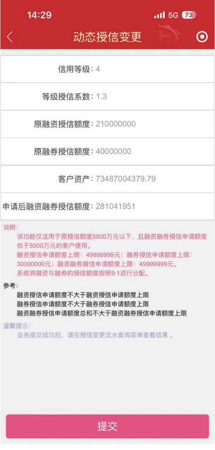 (3)系统将根据投资者提交的申请实时进行授信额度变更并将新的授信额度展示给投资者。